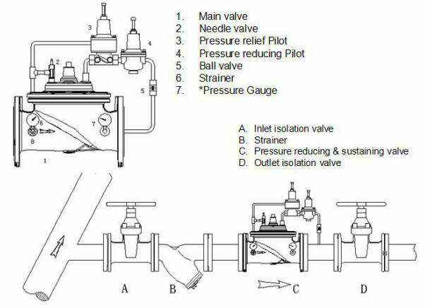 维持用户端管道的压力;当管道压力超过设定值时,阀门自动打开,把多余的压力释放到下游;当管道压力低于设定值时,阀门关闭;