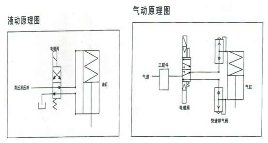 7.供货范围:液压式的带液压站执行机构(除使用单位自己有液压源)、二位四通电磁换向阀。